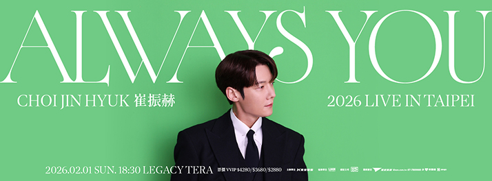 CHOI JIN HYUK 2026 LIVE in Taipei 將於Legacy TERA 舉辦,崔振赫會以什麼樣的面貌和大家見面呢?2/1等著你來感受屬於崔振赫的舞台時刻。