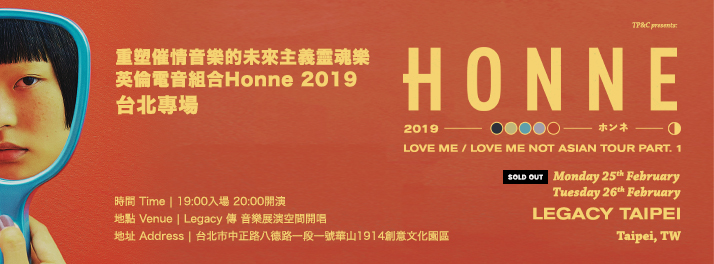 Honne 2019 Live in Taipei (加場2月26日)