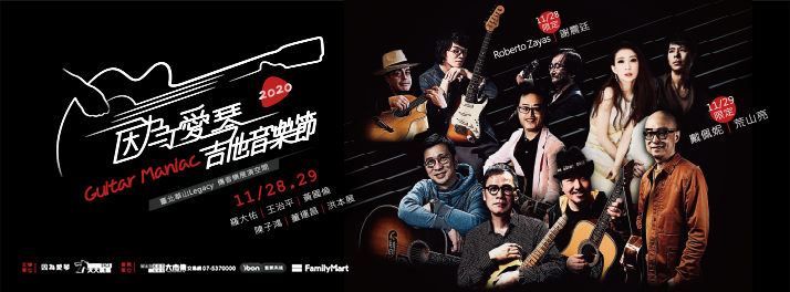(5)因為愛琴演唱會(Legacy):以吉他創作、彈奏技巧高超的詞曲創作人為主,邀請演出者皆為音樂圈中重要知名詞曲創作人,藉由演唱會舞台演唱自己的創作或喜愛的歌曲,配合現場LED的畫面呈現,讓參與者親身體驗,進入吉他音樂的世界。