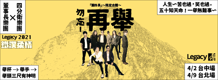 Legacy Presents【2021鐵漢柔情】「勿忘。再舉」董事長樂團 x 四分衛 - 台北場