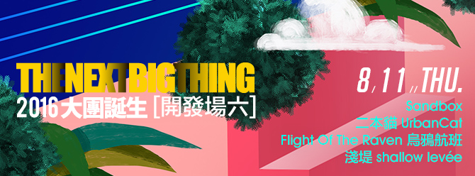 為更聚焦本地新生代創作, StreetVoice.com與Legacy合作, 以「搖滾新地景隆起 / 樂團新世代來臨」為角度,推出「大團誕生系列」今年邁入第七屆!「2016 The Next Big Thing大團誕生」繼續舉辦每月一場、共九場的「開發場」,每場將從StreetVoice.com音樂徵選活動評選出三組優秀新團,再搭配一組SteetVoice每月推薦之特別嘉賓,與樂迷齊力開發見證絕妙組合,一同登上Legacy Taipei(華山中五館)作售票演出!