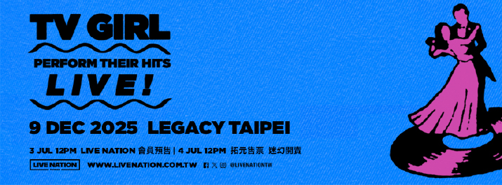 迎來成軍 15 年,TV Girl 展開巡演《TV Girl Perform Their Hits Live》,就如巡迴名稱:歷年代表作搬上舞台 Live 放送,12 月 9 日在台北 Legacy,一起沉浸在 TV Girl 不斷旋轉的音樂唱盤與迷離情緒之中。