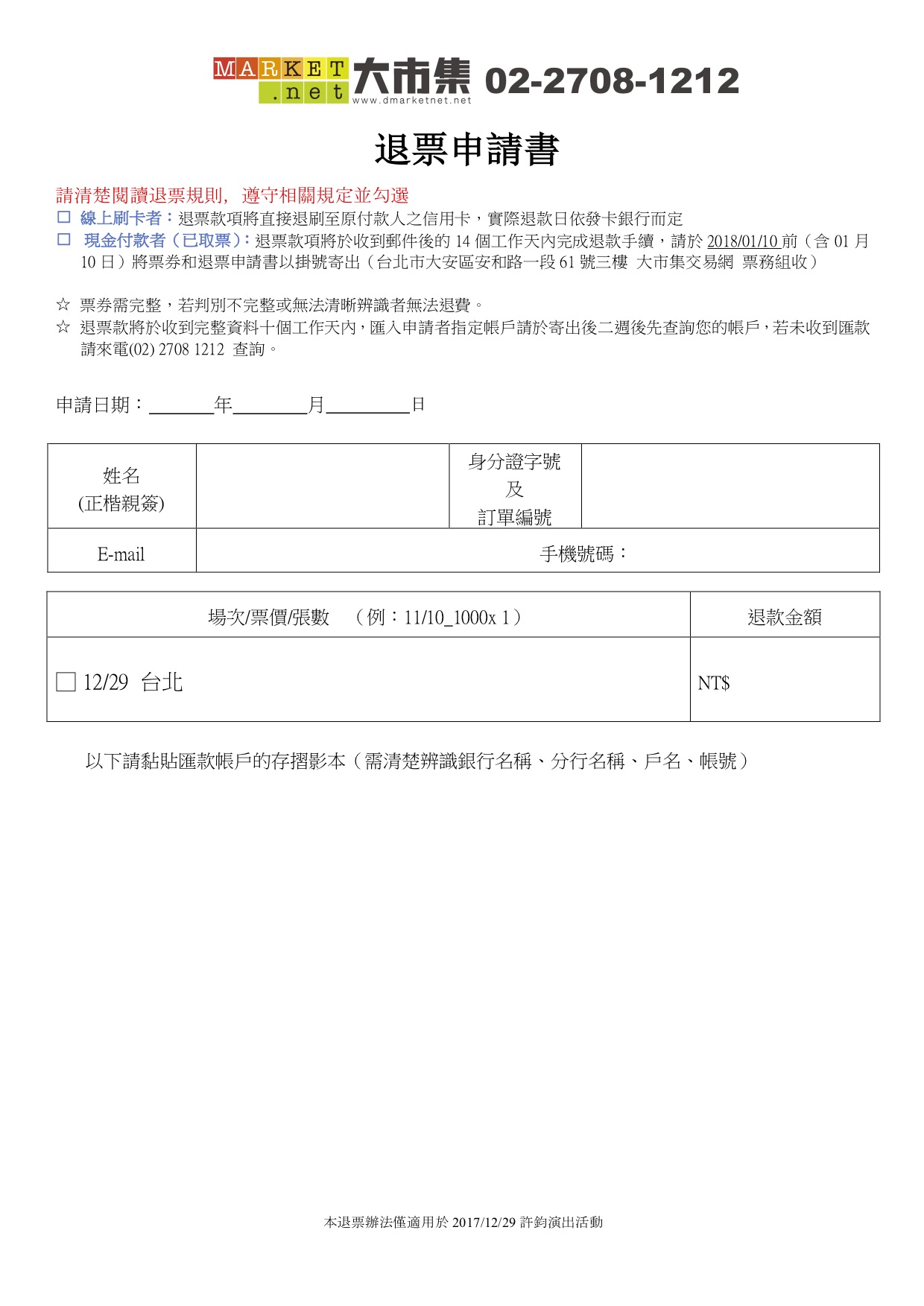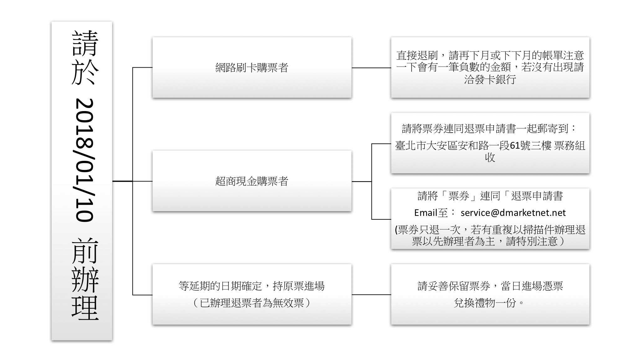 ★ 超商購票者由於沒有購買者紀錄,請下載下方「退票申請書表格」完成退票手續