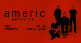 American Football - Asia Tour 2026 - TAIPEI 主辦單位: Young Team Productions 演出場地: Legacy Taipei 音樂展演空間 演出地址: 台北市八德路一段一號華山1914創意文化園區 中五館 演出日期: 2026-07-29(三) -