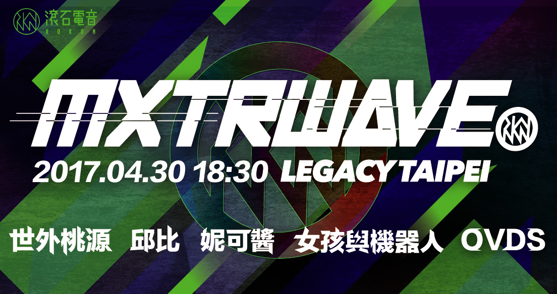 ROKON presents『MXTRW∆VE』 主辦單位: ROKON滾石電音 演出場地: 永豐Legacy Taipei音樂展演空間 演出地址: 台北市八德路一段一號 華山中五A館 演出日期: 2017-04-30(日) -