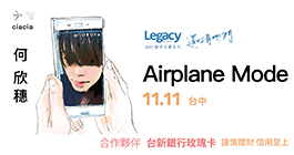 Legacy Presents【2017都市女聲】:何欣穗 Airplane Mode -台中場 主辦單位: 若霖股份有限公司 演出場地: Legacy Taichung 音樂展演空間 演出地址: 台中市西屯區安和路117號 演出日期: 2017-11-11(六) -
