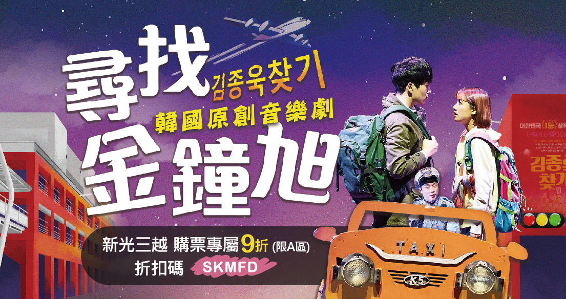 韓國原創音樂劇《尋找金鐘旭》 主辦單位: 聯合數位文創股份有限公司 演出場地: 信義劇場 Legacy MAX(台北新光三越A11 6F) 演出地址: 台北市信義區松壽路11號6樓 演出日期: 2019-09-11(三) -