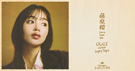藤原櫻 Live in Taipei 2026 主辦單位: 寬宏藝術經紀股份有限公司、 Welcome Music 、雅慕斯娛樂 演出場地: Legacy Taipei 演出地址: 台北市中正區八德路一段1號華山1914創意文化園區中5A館 演出日期: 2026-05-03(日) -
