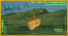 【 希望別落雨 - Me and my sandcastle 亞洲巡演 2025 】 主辦單位: 若霖股份有限公司、典選音樂事業股份有限公司 演出場地: Legacy Taichung 音樂展演空間 演出地址: 台中市西屯區安和路117號 演出日期: 2025-12-26(五) -